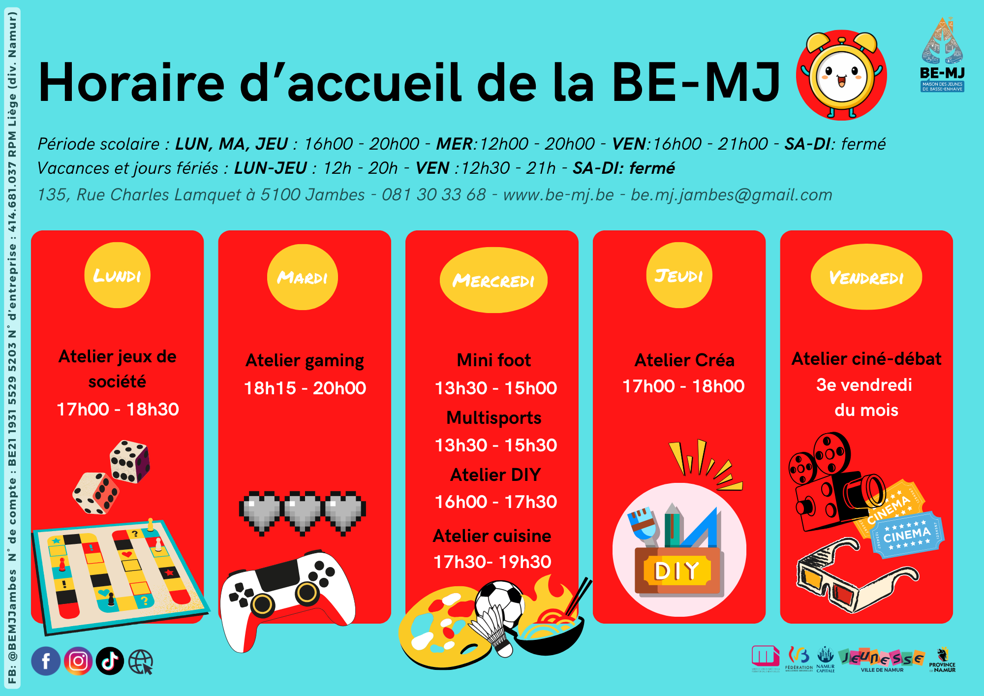 5 mars 2026 La BE-MJ, la Maison de Jeunes qui te ressemble ! 2000 × 1414 2025-2026 Horaire BE-MJ J’aime chargement…