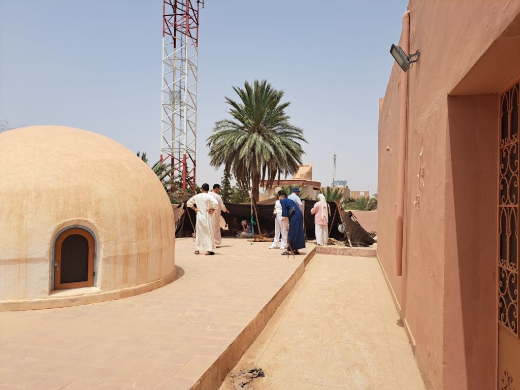 Ich :Ich, un petit village situé au point de la frontière entre le Maroc et l’Algérie, a marqué une étape mémorable de notre voyage. Nous avons eu la chance d’être accueillis chez un habitant local, où nous avons partagé un repas traditionnel. Le menu comprenait de la chèvre préparée en méchoui, accompagnée de fruits frais comme la pastèque et le melon, ainsi qu’une délicieuse soupe harira. Ce moment de convivialité et de partage autour de la table nous a permis de vivre pleinement l’hospitalité marocaine.