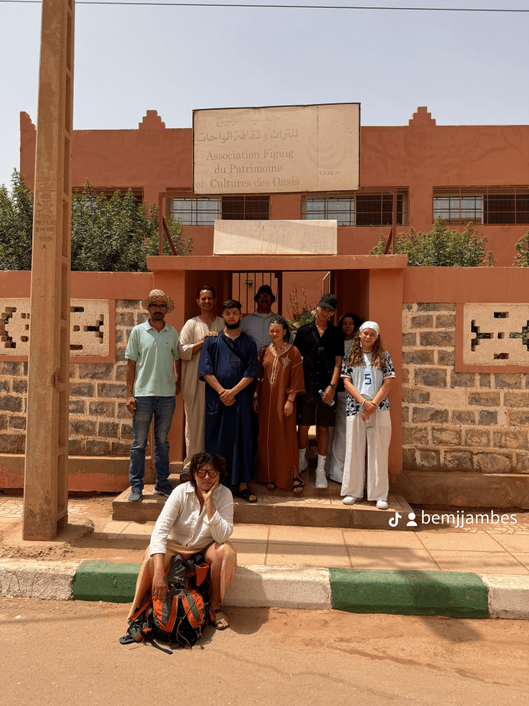 Figuig : À Figuig, nous avons découvert un lieu emblématique grâce à son système d’irrigation ingénieux pour les champs de dattes, essentiel à la vie de la région. Nous avons visité ces vastes champs de palmiers-dattiers qui entourent la ville, en apprenant l’importance de cette culture dans l’économie locale. Nous avons également vécu une expérience unique avec les bains de sable thérapeutiques, une tradition bien ancrée dans cette région désertique. La visite du musée de l’association de Figuig du patrimoine et des cultures des oasis nous a permis de mieux comprendre l’histoire et les traditions locales. Enfin, nous avons été émerveillés par les fresques naturelles du désert qui témoignent de la beauté et de l’héritage artistique de cette région.
